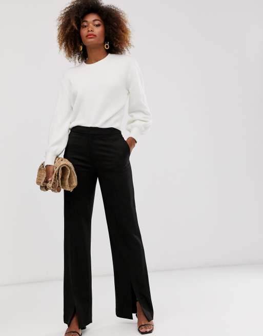 Saint Genies – Schwarze Hose mit weitem Bein und Schlitz vorne | ASOS